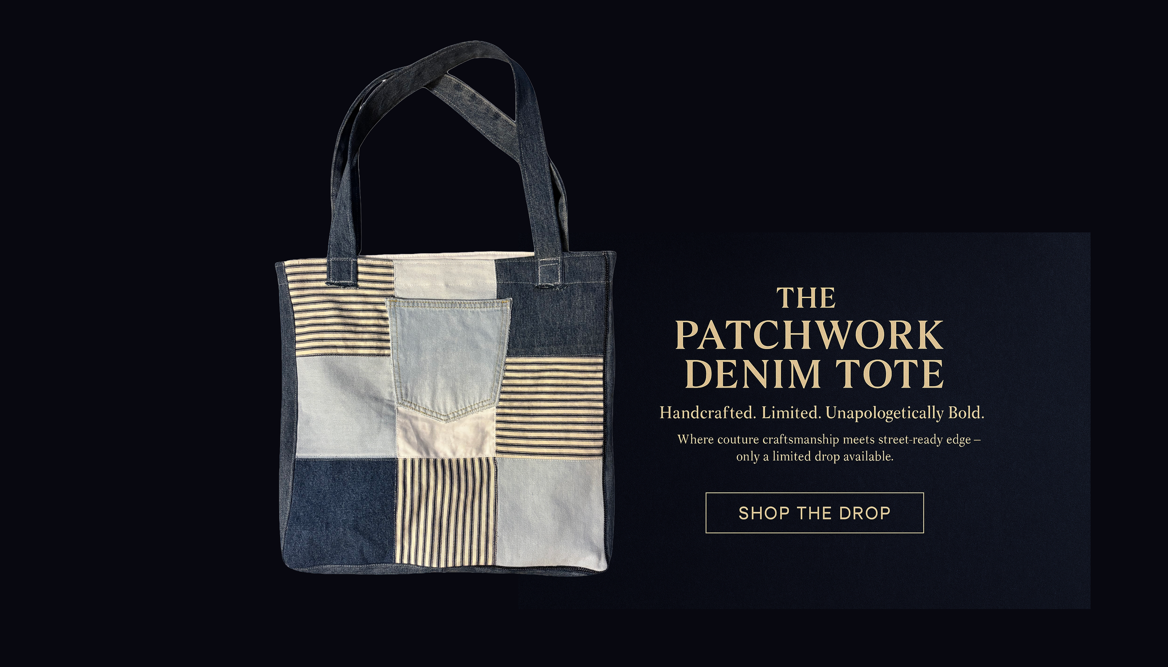 Elevate your everyday look with a one-of-a-kind statement piece. Our Patchwork Denim Tote is meticulously handcrafted from authentic, repurposed denim jeans—each panel thoughtfully selected, cut, and stitched to create a bold, modern patchwork design. No two bags are ever alike, making yours a truly exclusive work of functional art.